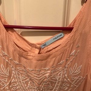 Women’s Maurice’s tank. Button up back, peach/blush with white embroidery.