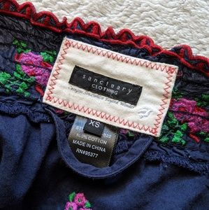 Cute embroidered tank top with adjustable straps. Very little elastic in the top part. Tag says XS but it is too large for me and I usually wear a S. I'd call it a small/medium. Free of stains or tears.