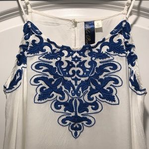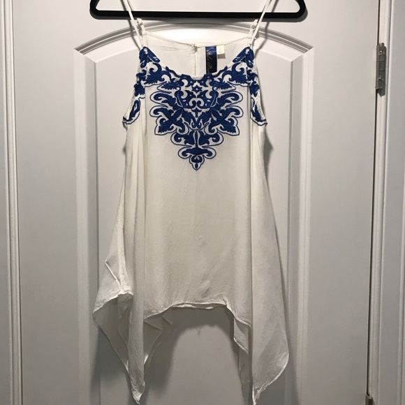 Lightly worn. Beautiful flowing tank top with embroidered floral pattern. Adjustable straps. Pet friendly home ❤️🐾 Make an offer!