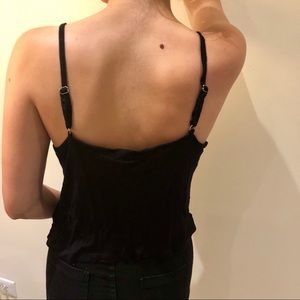 Comfortable black tank top with white embroidered neckline. Adjustable straps.