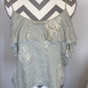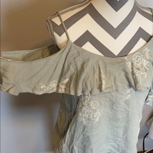 Light blue/grey tank with stitched roses Overlay on each arm From TJ Maxx with Tags