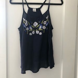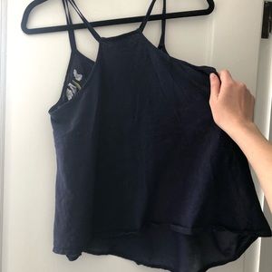 This Racer back flowy tank top is super comfortable and airy. It has two different materials. A light linen in front and a stretchy cotton in the back. Fits s/m