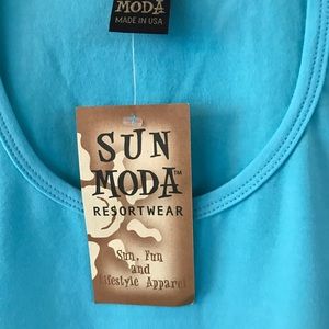 Super cute turquoise top with embroidered and beaded fish. Very soft fabric with a little stretch… Form fitting yet comfy. Perfect for that tropical vacation or lunch with friends!