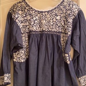 Hand embroidered top made in Mexico. 100% cotton. 3/4 length sleeves