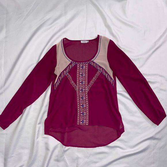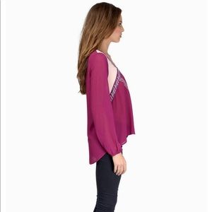 Loose fitted embroidered top. Shirring at the wrists.