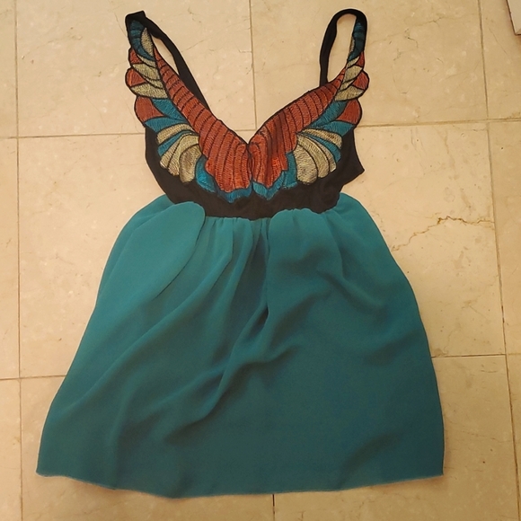 Unique green top with embroidery Babydoll style