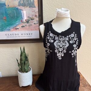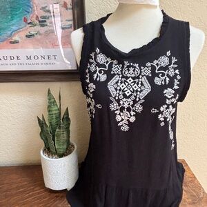 Beautiful design! Black embroidered top with a flounce on the bottom! So cute!