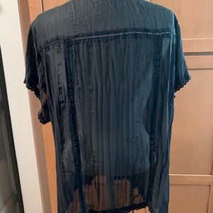 Beautifully embroidered black top with short sleeves. 23 in. pit-to-pit, 27 in. length. Size 2X. Polyester.
