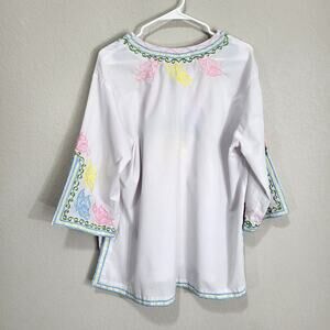 Embroidered Top womens XL XXL 16 18 White Pastel Butterfly Embroidery Summer