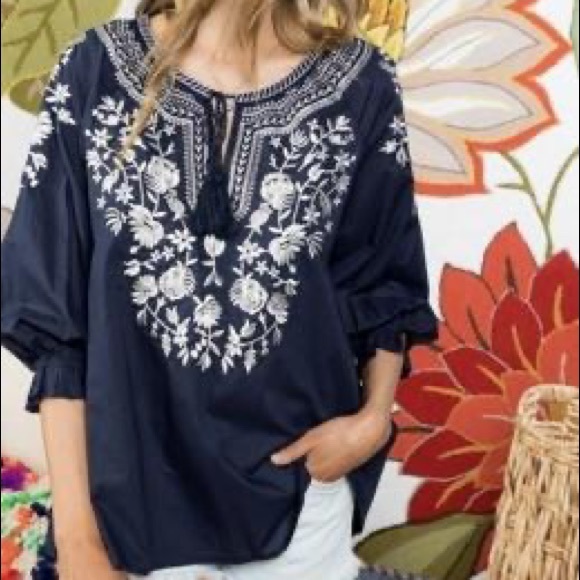 @ Charlegirl Hi, what is the pit to pit measurement on this beautiful tunic and what is the material? Thanks
