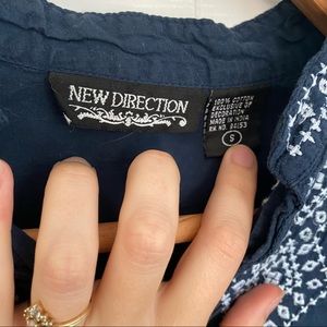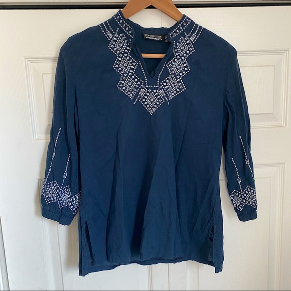Cute high collar tunic with beautiful embroidery details. Cute worn long or tied up. Perfect top for summer concerts or the beach!