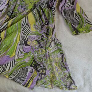 Embroidered Tunic Mini Dress Women's Medium Purple Green Abstract Paisley Print
