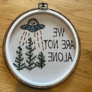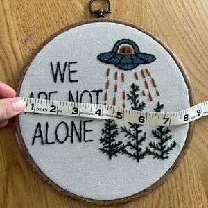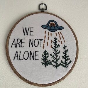 Embroidered UFO “ We Are Not Alone” Wall Art circular 8” decor