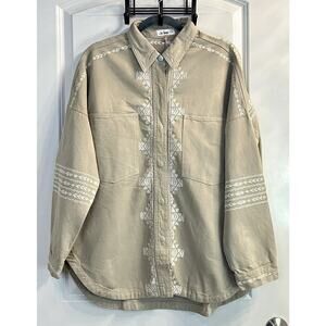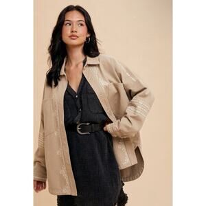 Embroidered Utility Snap Shacket Jacket Choctaw Aztec Dakota Tribal Cowgirl S