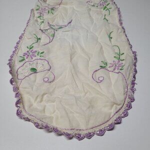 Embroidered Vintage Linen Butterfly Purple Green Stitch Granny Cottage Lace