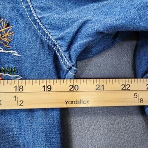 Embroidered Vintage Womens Top Medium Bobbie Brooks Chambray Denim Winter Holiday Granny Grandma