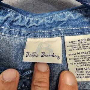 Embroidered Vtg Womens Top Medium Bobbie Brooks Chambray Denim Winter Holiday