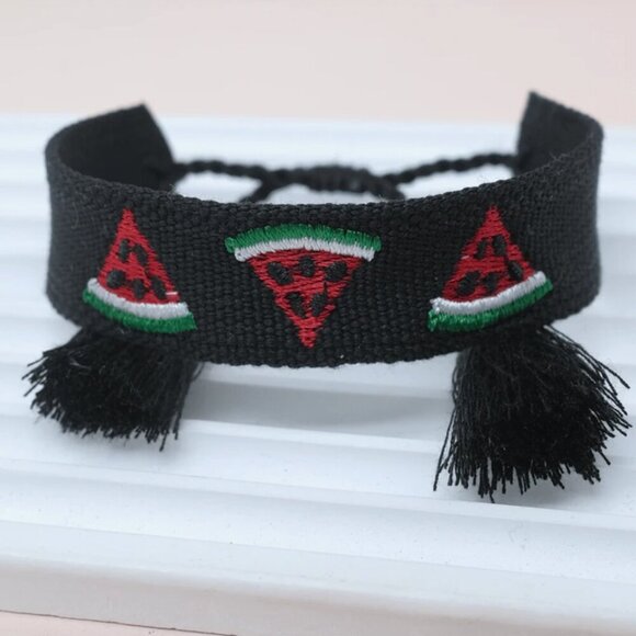 Embroidered Watermelon Bracelet Handmade Woven