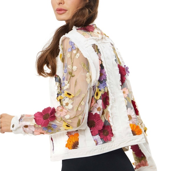 Stylish white jacket with vibrant floral embroidery. Perfect for adding a touch of elegance to any outfit.