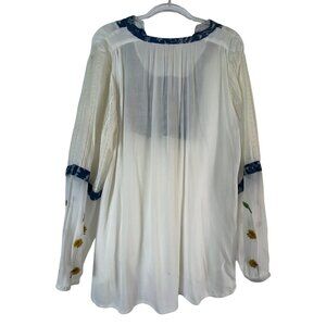 Embroidered White Large Boho Blouse Floral Accent Top Hippie Coastal Casual Cute