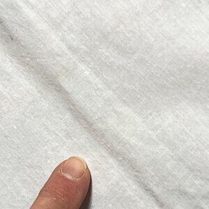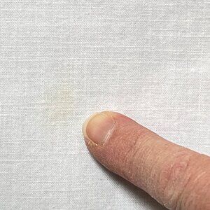 There are no visible tears or holes. There are some light stains in various places of the table cover. See photos for more information. Has been professionally cleaned. Non smoking home.