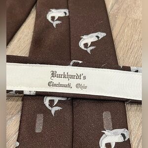 Embroidered Woven Shark Pattern Tie Burkhardt’s Cincinnati OH Designer Brown EUC