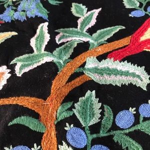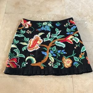 Beautiful floral embroidering with a micro pleat hem. Hidden side zipper closure