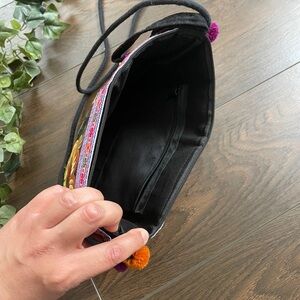 Has a strap to wear on the shoulder or crossbody and a small strap if you want to wear as a wristlet