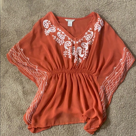 Very nice float embroidered top, flattering fit in like new condition