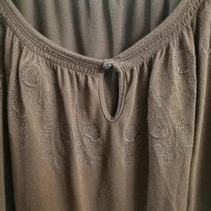 Very pretty Brown blouse with embroidery on neckline and sleeves. Gently used.