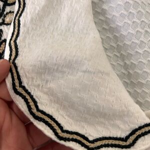 Elegant white blouse featuring intricate black embroidery. Perfect for a chic and stylish look.
