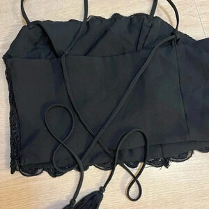 This is super cute!! Has a side zip and you adjust the straps and do what you’d like with the strings with tassels. Dress this way up or with jeans. Brand new no tags