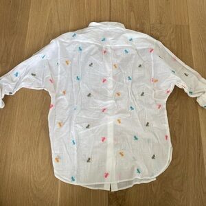 Embroidered cover up summer light gauzy button down Loft blouse size xs
