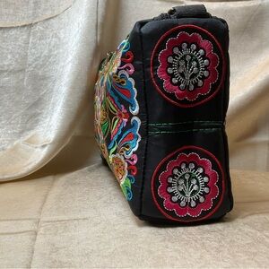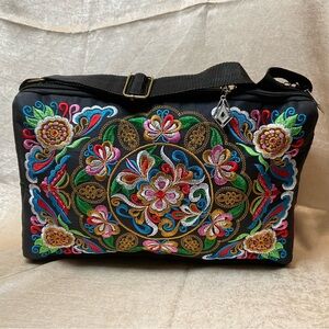 Embroidered crossbody bag with three separate zippered compartments, NWOT