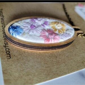 Embroidered daisy floral necklace A path less raveled cottagecore log dangle loo
