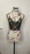 Stylish dark gray crop top with vibrant embroidered patterns. Perfect for adding a pop of color to your wardrobe.