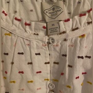 St John’s Bay blouse with multi-colored embroidered dots NWT