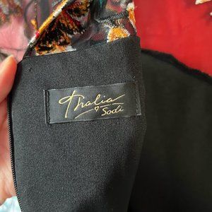 Gorgeous semi formal midi dress. Embroidered floral mesh overlay with ruffled cap sleeves and ruffled hem. Sweetheart neckline with illusion mesh overlay and a keyhole back. Zips up the back. One of my fav dresses because it’s so beautiful but just doesn’t fit me right. Unmarked size but would fit size 6 - 8