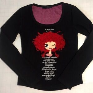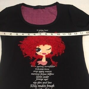 Embroidered graphic long sleeves black T-Shirt ; Very good worn condition; Measurements are photographed.