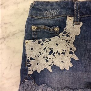 Mossimo supply co. Jean shorts with a embroidered flowers. Super cute for summer. Size 5 but can also fit a size 3 well. Lemme know if you have any questions at all :)