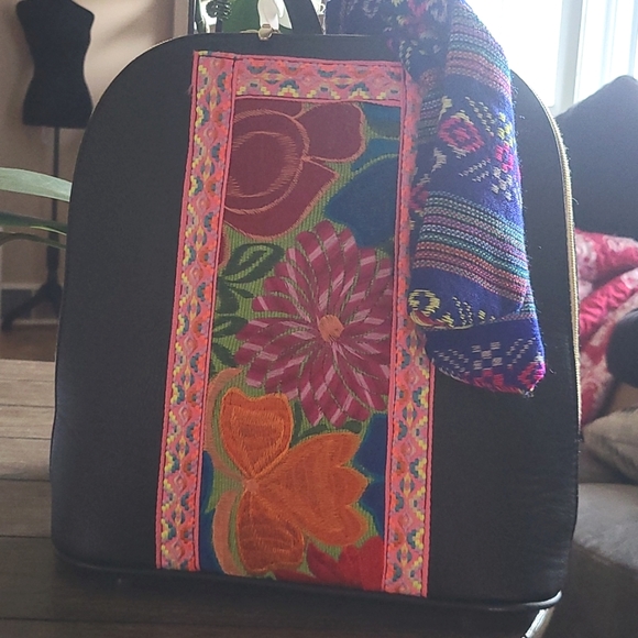NEW WITHOUT TAG IMPORTED FROM MEXICO real artesanal black leather embroideredVery spacious its about 12 inches tall and 14 inches wide
