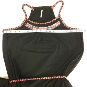 Beauty never felt so good with this comfy, stylish maxi dress. Adorned with pink and white geometric embroidery and features removable woven belt for adjustable fit and matching strap and trim detail. XL but also fits S-L depending on desired fit. Slightly high-low- see pics for measurements. Bought at TJ Maxx. 60 % cotton, 35% Rayon, 5% Spandex. GUC- only flaw is mark on inside of skirt- not visible when worn and likely come out in wash. Smoke free home, may have been exposed to cat. Offers:)