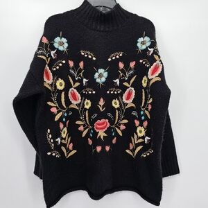 Embroidered mock neck wool blend tunic sweater womems size 1X