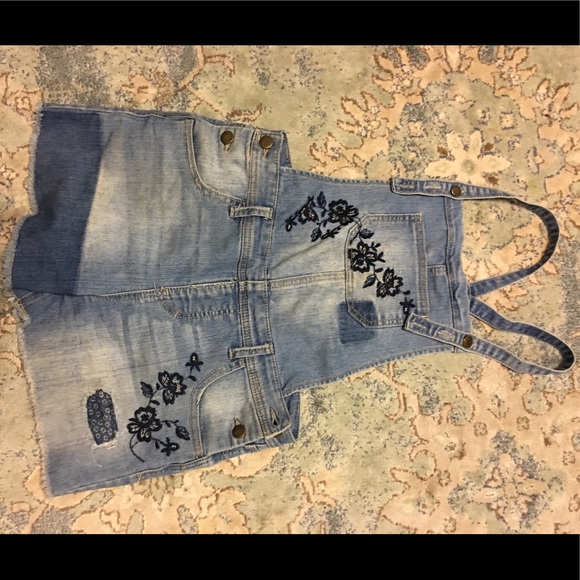 Cute embroidered overalls. Used, no stains or rips. Has been dry cleaned. Very cute, size 14/16