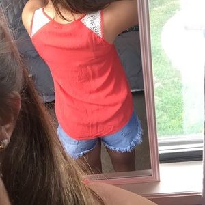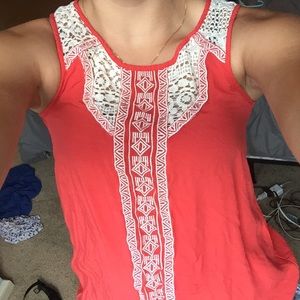 super super cute red tank top with white embroidering on the neck and down the middle. size small & never worn!!