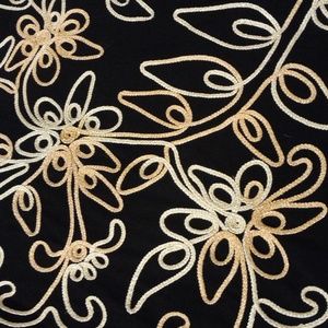 Embroidered & scalloped black and metallic gorgeous top, size medium