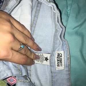 Pretty design! No tears in stitching or stains. Light colored jeans.