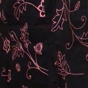 Black skirt with a beautiful pink embroidery. Skirt waist measures 19 inches on each side for a total of 38 inches. Height is 23 inches