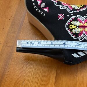 Embroidered stiletto black ankle booties. Back zipper on the heels. Size 39. NWOT.