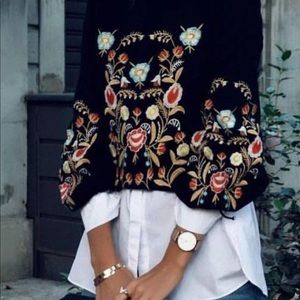 Beautiful black knit sweater with stunning floral embroidery pattern. New with tags- last photo is for the vibe similarity